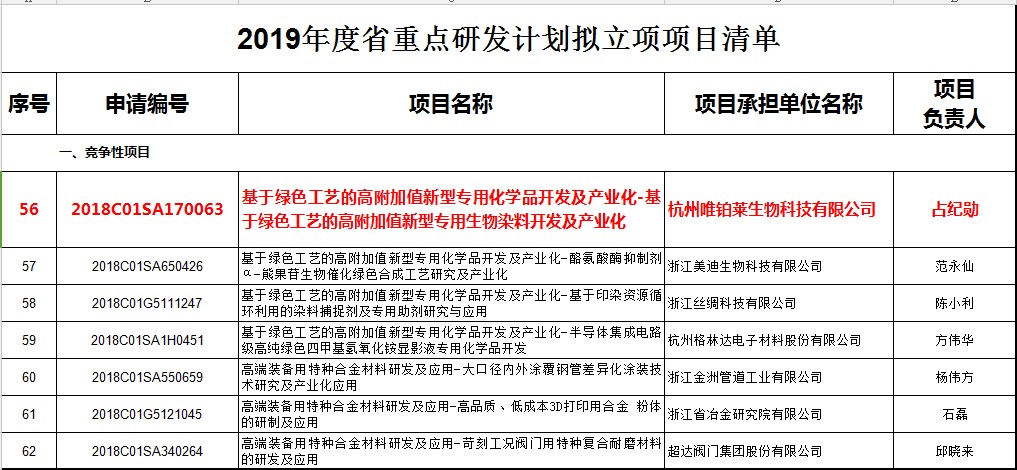 喜讯 | k1体育官网<生物天然色素>项目被列入2019年度浙江省重点研发计划