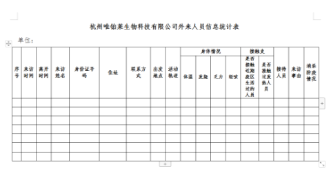 公司检疫:所有人员(仅限公司员工)进入办公区域必须进行体温检测,体温正常并无其他症状,经全身消毒更换口罩后进入场地,并填写记录表。