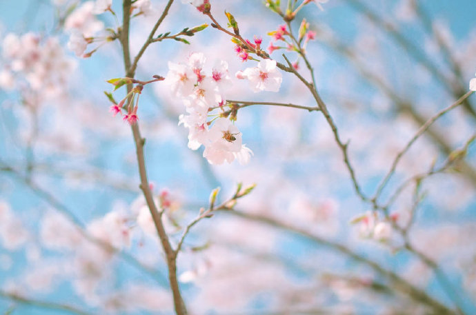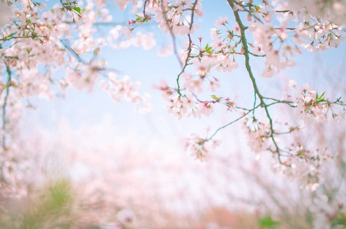 浅浅匀红淡若梅,纷纷落樱恰如雪。