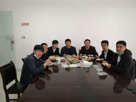 k1体育官网首批进驻员工吃开工饭,场面艰苦朴素、其乐融融。