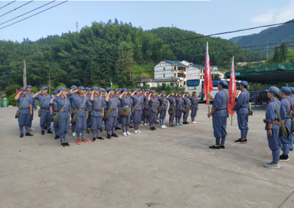 穿上红军装、戴上红军帽,扎紧标注着“八一”的腰带。我们整装待发。走一遍红军路,牢记革命的艰辛,传承红色基因。