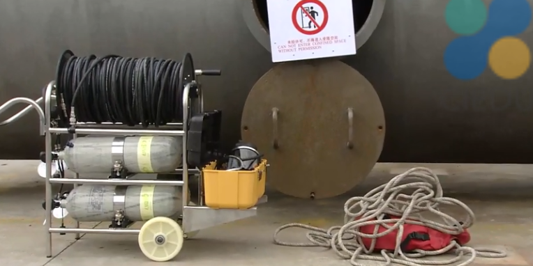 6、在作业现场配备应急救护工具,包括空气呼吸器、供风式防护面具、救生绳和灭火器材等。