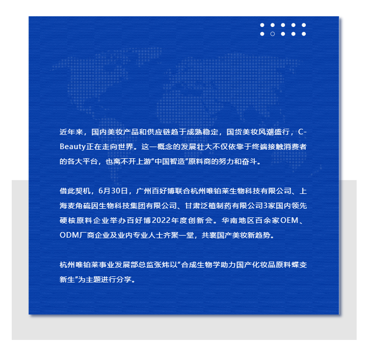 l 国货品牌商面临众多挑战,从原料入手或是破局之道。受技术、政策、原材料等因素的限制,一些化妆品原料尽管功效出众,但因为化工工艺复杂,成本高,安全环保等条件限制,依然无法大规模生产应用。而利用绿色高效的合成生物技术和方法可以很好地应对这些挑战。