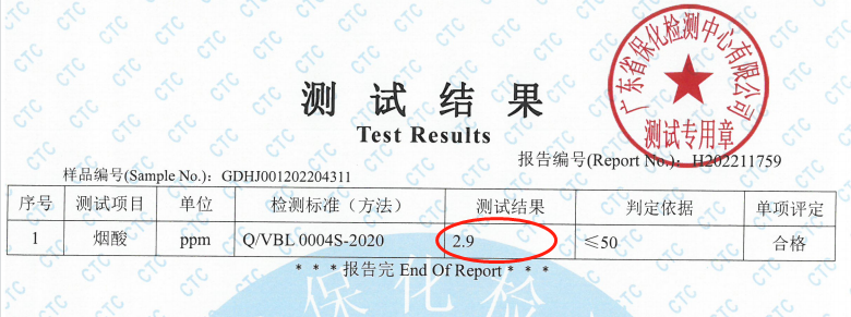 烟酸,作为影响烟酰胺在化妆品使用中最为重要的指标,其含量应当低于100ppm,才能发挥美白护肤效果的同时,保证温和低敏。k1体育官网新一代®烟酰胺,不仅达到低于100ppm的行业标准,更是在公司严格的企业标准中,将烟酸含量控制指标定在20ppm以下,经行业权威第三方机构实际测评,烟酸含量低于10ppm。