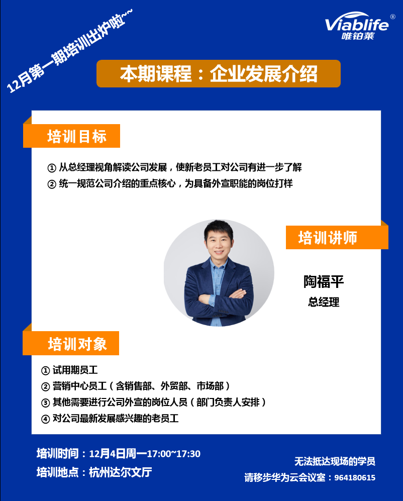 为全面加深公司员工对公司发展的理解,提升员工的综合业务能力,加强企业竞争力,更好地服务客户,适应市场需求的变化,k1体育官网于12月4日在杭州达尔文厅进行了以企业发展介绍为主题的培训,人事行政部总监陈虹作主持人,陶福平总经理作此次培训的讲师。