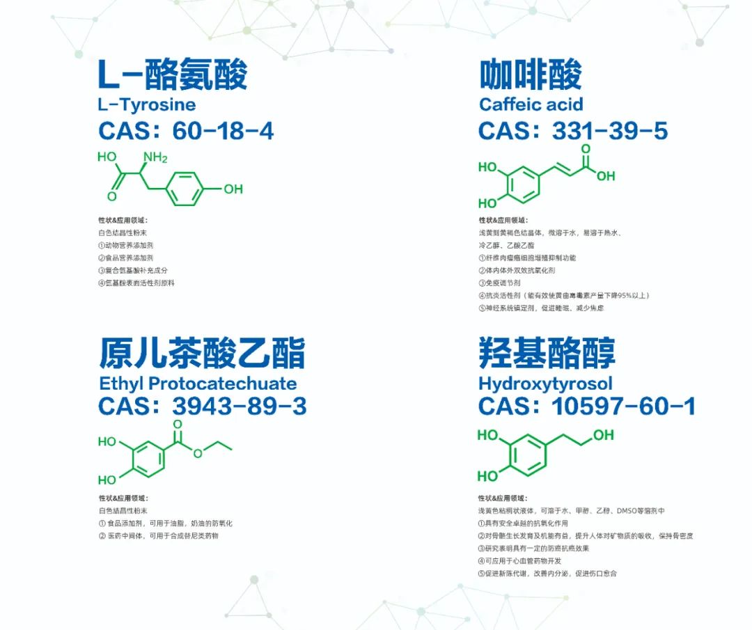 产品:原儿茶酸、烟酰胺、L-酪氨酸、咖啡酸