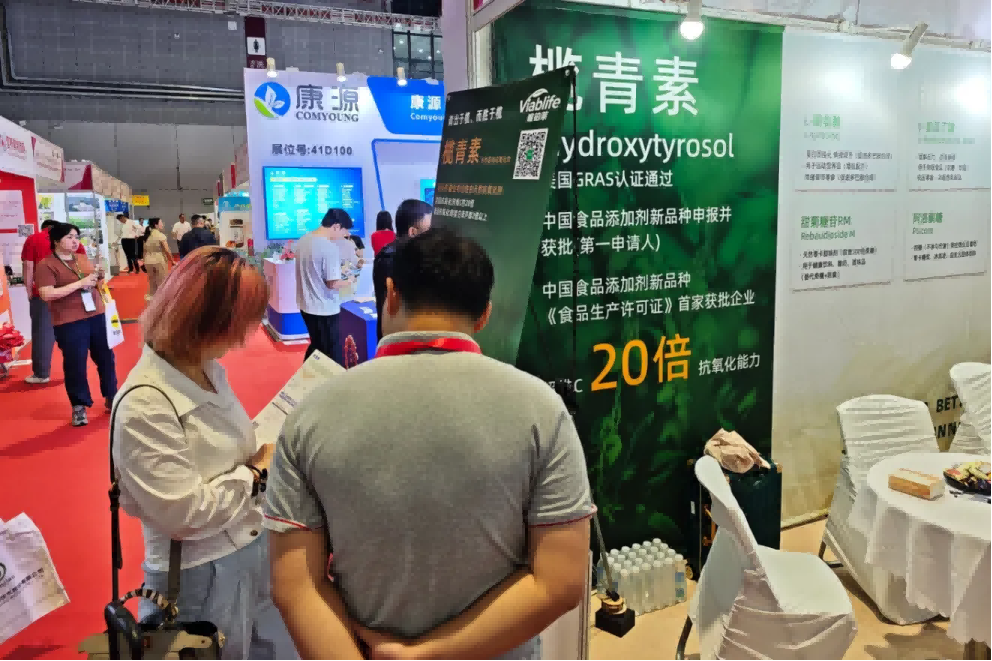 得益于在生物合成和发酵工艺方面的领先优势,k1体育官网在展会上推出了新品“榄青素”。该产品在原料选择上层层把关,具有抗氧化能力强、100%生物基碳、原液纯度高达99%等优势。并结合k1体育官网多年发酵技术的加持,不仅通过了美国GRAS认证,还获得了中国食品添加剂新品种申报并获批(第一申请人)、中国食品添加剂新品种《食品生产许可证》首家获批企业两项国家级行业认证。