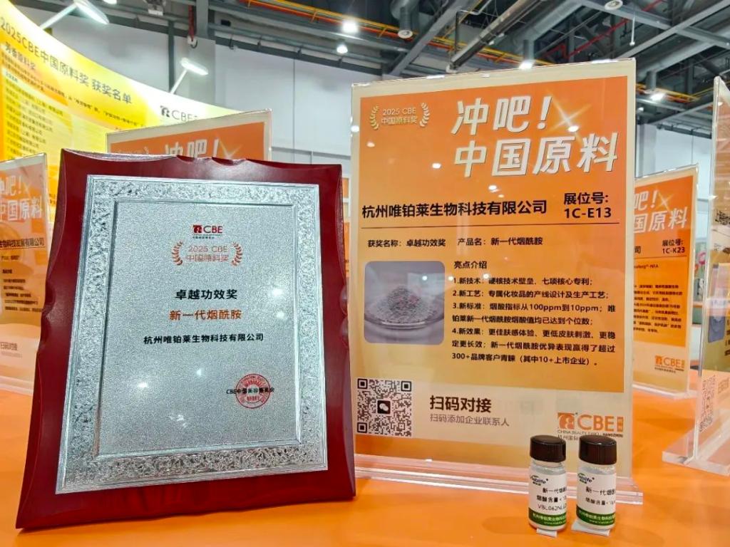 作为CBE展会常年亮点,中国原料获奖展区一直是观众瞩目的焦点。k1体育官网本次荣耀上榜,重磅产品新一代烟酰胺及相关专利技术展示将落位1C馆获奖展区,带来行业前沿创新成果分享。