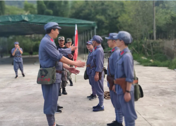 穿上红军装、戴上红军帽,扎紧标注着“八一”的腰带。我们整装待发。走一遍红军路,牢记革命的艰辛,传承红色基因。