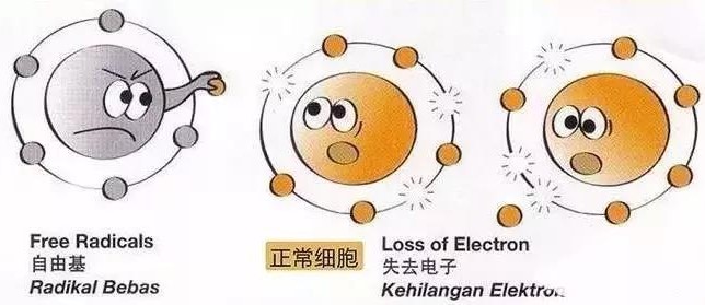 在正常生理情况下,人体内也会不断地产生自由基,它们是人体正常代谢的中间体或产物,适量的自由基也能够辅助机体进行一定的代谢,如: