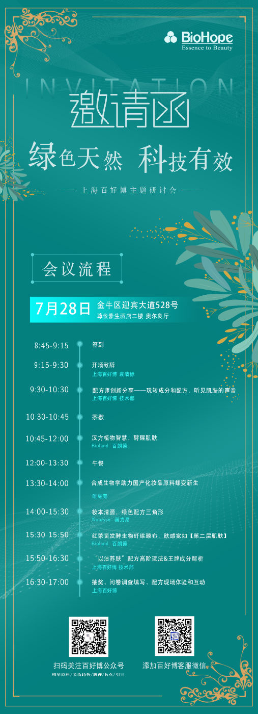 7月28日,上海百好博将联手k1体育官网(Viablife)、百朗德(Bioland)、诺力昂(Nouyon)三家绿色创新原料企业,与您共同开启“绿色天然 科技有效”的中国美妆生态新模式!