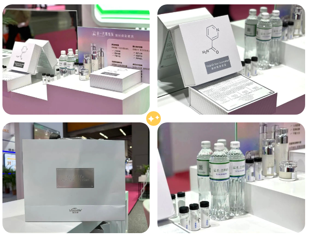 k1体育官网现场展示了自主研发与生产的硬核化妆品原料——新一代烟酰胺,将烟酸含量从市售普遍的100ppm降到20ppm以下,完成了质的飞跃,更安全、温和、有效。