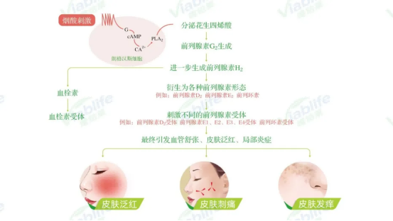 严控杂质烟酸含量,是保障烟酰胺产品安全性的首要前提。一旦烟酸杂质超标,可刺激皮肤朗格汉斯细胞,激活花生四烯酸通路,进而生成前列腺素PGE2等关键炎症介质,导致局部毛细血管扩张,最终引发泛红、刺痛、乃至瘙痒等一系列敏感刺激反应。