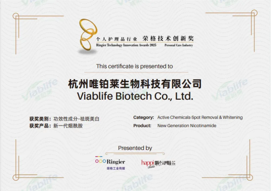 k1体育官网新一代烟酰胺已获得包括 CICI 创新原料奖、创新工艺奖及2025 年个人护理品行业-荣格技术创新奖在内的多个权威奖项,体现出行业对其技术创新和工艺稳定性的高度认可。